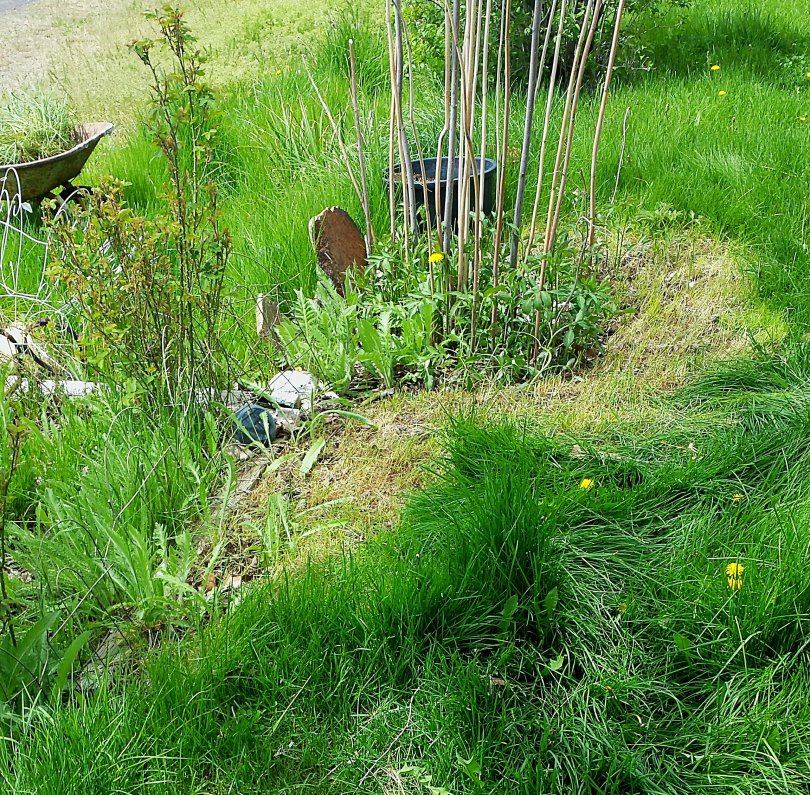 This is no ordinary grass, mind you. This grass is indestructible, kind of like gorse on a golf course. I swear it has the genetics of dragon scales with a rooting density that out competes bacteria in a hot spring. It’s meristems are easily activated and kick it into overdrive when temperatures begins to warm. It is ever encroaching into any unoccupied nook, cranny or corner in the yard and oftentimes completely chokes out emerging resident species, such a my planted wild rose. Gnarly to whack back with a weed eater, I often go “for its throat” with my bare hands, tearing it out from the edges of planting beds, underneath my elderberry and other luscious little sites. I have given up on trying to introduce anything along its borders. It defends its territory so well, that I am tired of putting out anymore effort to restrain or “retrain” it’s indomitable spirit……