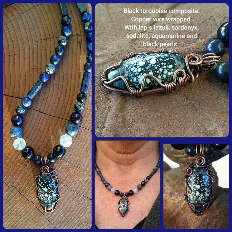 Anyhoo… when I completed my last day of field work, I drove back to the University. On my way, I purchased a ring at the local country store. A ring that contained the stone I found today….. Hmmm. 31 years ago. Now THAT is a river of time that has flowed through my fingers…. As it turns out, the stone is a “composite”, an “assembled” stone. One that simulates a gemstone and is made of two or three layers of gemstone or glass. These are cemented or fused together so as to appear as a whole natural stone. I did not know that at the time I purchased it. The shopkeeper identified it as a “Black turquoise” at the time. Uh-huh….