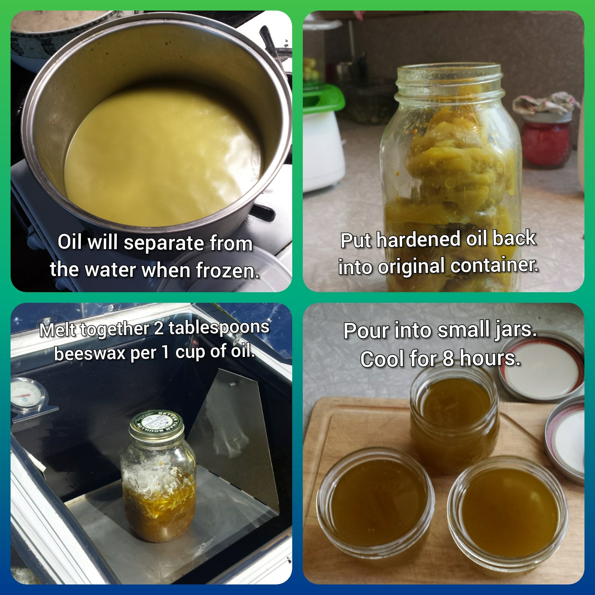 9) Melt the beeswax into the oil using a double boiler (I used a solar oven).