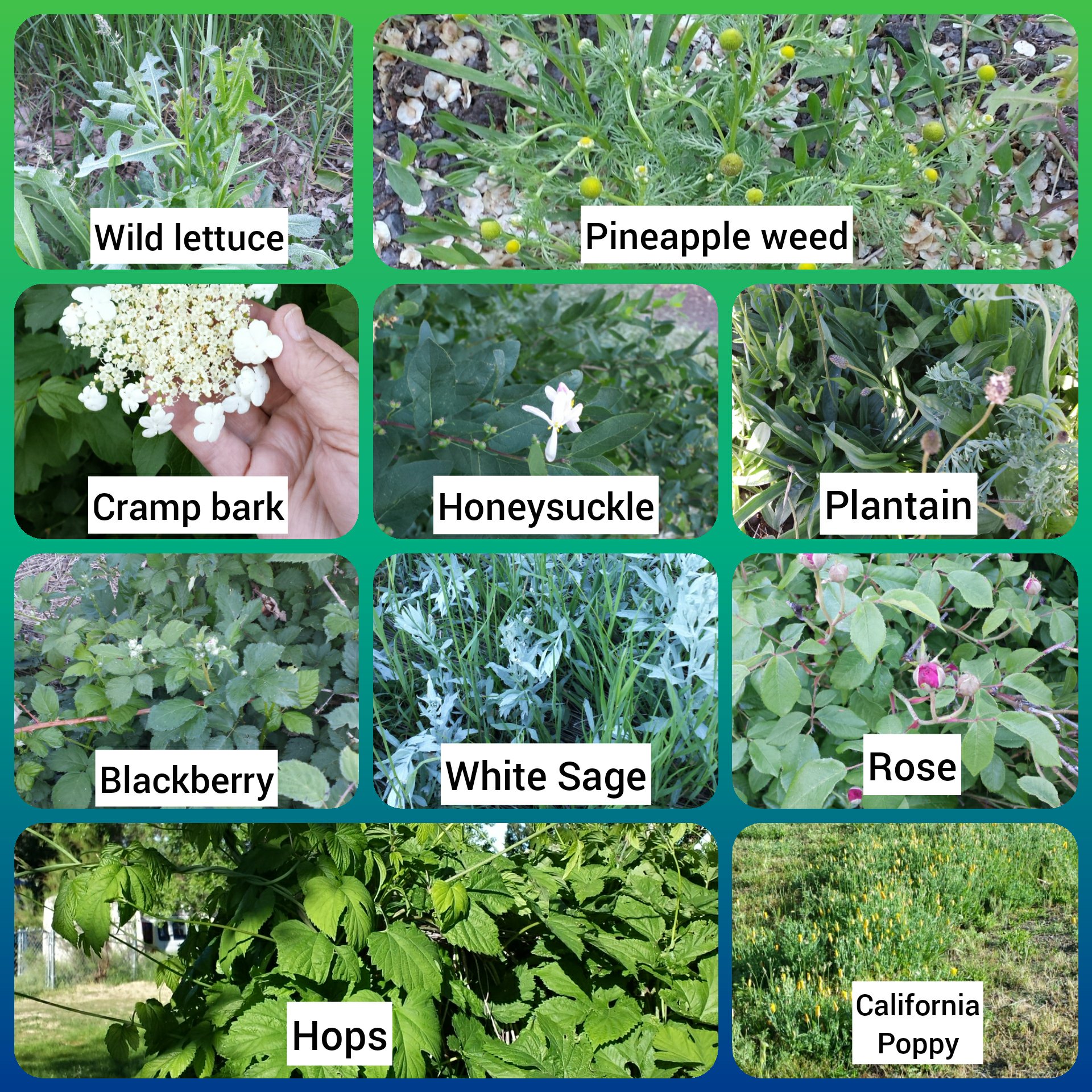 This morning proved abundant with over a dozen herbs including alfalfa (nourishing), amaranth (controls mucous, stomach irritations), choke cherry (coughs, congestion), cleavers (urinary tract and skin), dandelion (tonic and diuretic), gum plant (bladder infections), hops (sedative, tonic, antibiotic), cramp bark (nervine), wild lettuce (pain relief), pineapple weed (calming sedative), mallow and mullein (coughs and colds), honeysucke (coughs), plantain (anti-inflammatory), blackberry (tonic), Old World rose (mild astringent, diarrhea), cranesbill (astringent, excessive bleeding), and California poppy (sedative, analgesic).One really does not have to venture deep into the woods to find plants with medicinal benefits. As a matter of fact, disturbances created by humans provides ample habitat for these “weedy” species to emerge. Take a walk around your block with a good herbal identification book in hand….you never know what you will discover!
